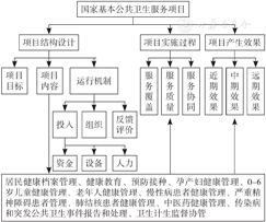 卫生服务项目的效果评价要以项目目标为导向,项目目标主要分为近期目标、中期目标和远期目标,项目效果评价也包括了近期效果、中期效果、远期效果三个层面。剖析我国基本公共卫生服务项目目标,可概括为:(1)近期目标:包括建立健全各项项目管理制度、逐步实现人人享有基本公共卫生服务的机会均等,提供规范化同质性服务,各项基本公共卫生人群服务覆盖率较高,重点人群健康管理服务有效提供;(2)中期目标:包括保证服务质量、提高服务效率、居民健康素养提高、人群健康危险因素降低、疫苗可控的传染病得到控制、主要慢性病得到控制、发病率增速下降或减缓;(3)远期目标:包括提高全人群健康水平,健康危险因素得到控制,人群慢性病疾病发病率、病死率、病残率显著降低,对国家和个人的医疗卫生费用的负担降低有所贡献。