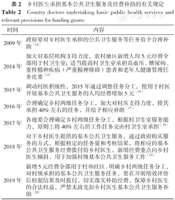 2018年,党中央、国务院开始推进中央与地方财政事权和支出责任划分改革,发布了《医疗卫生领域中央与地方财政事权和支出责任划分改革方案》[11],2019年中华人民共和国财政部、国家卫生健康委员会、国家医疗保障局、国家中医药管理局四部门联合发布了《基本公共卫生服务补助资金管理办法》[12],同时废止了《公共卫生服务补助资金管理暂行办法(财社〔2015〕255号)》,基本公共卫生的筹资机制和资金管理制度逐渐完善。然而,在本轮评估调研中发现,在项目筹资方面,还存在以下问题:一是缺乏明确的资金保障机制;《中华人民共和国基本医疗卫生与健康促进法》要求:国家基本公共卫生服务项目由国务院卫生健康主管部门会同国务院财政部门、中医药主管部门等共同确定,实际上每年人均基本公共卫生服务项目经费的调整基本上是国家卫生健康委和财政部之间的博弈,缺乏明确的资金增长和长效保障机制。二是对项目资金投入和增长幅度缺乏科学论证;自2009年新医改以来,我国基本公共卫生服务经费几经调整,不断增长,筹资增长的频度和幅度主要依靠行政决策,人均经费标准是否充足,筹资增长是否适当。随着服务需求的增加、服务能力的提升,服务经费应该达到怎样的标准,未来几年应该以怎样的速度增长,类似问题均缺乏系统研究。三是部分地区资金不足,尤其在偏远山区问题突出,在本次访谈中,基层医疗卫生服务机构的管理者对资金补助不足的问题提出了看法,以下观点具有一定代表性:"公共卫生服务现在还亏钱,各项的运行成本算下来,其实经费是不足的,例如健康体检项目多年没有变,但以前可能是黑白,现在彩超,心电图这些项目成本就上涨了,政府补贴不够;实际上公共卫生的投入挺大的,我们单位自己的成本就很高,基本上整个公共卫生经费不足以支撑公共卫生服务人员的开支等各方面。"(被访者M61);"基本公共卫生的人均补助经费在我们这个地方根本不够,在平原地区还好,在山区的入户交通成本、人力成本都非常高,慢病随访、老年人体检两个项目的成本远高于补助成本"(被访者M17、M35)。四是大部分地区缺乏细化的资金使用办法,影响了资金使用效率;由于缺乏细化资金使用办法或者资金拨付滞后,个别地区存在大量资金结余和沉淀[13],也有的地区存在资金违规使用问题。"公共卫生的资金并没有真正用到位,项目资金管理得太死,没有相应的细化;资金不能随意使用,但是又担心资金结余会被认为不作为"(被访者M6、M11)。五是乡村两级在任务和资金分配上存在矛盾点,为了稳定村医队伍,提高村医待遇,国家政策一直对乡村医生的基本公共卫生资金分配有所侧重,见表2[14,15,16,17,18,19,20],特别是2016、2017年度的相关规定,为了进一步加大对村医支持力度,原则上使其承担40%左右的任务,并给予相应补助。对于此项规定,部分乡镇卫生院对这一分配比例的要求存在异议,主要是由于村医服务能力的局限性,无法承担40%的任务比例,造成了乡村两级在资金分配上的矛盾。比如:"我们这边的大部分活都是卫生院来干,下面好多村医年纪大了,很多活儿他们干不了,比如要用电脑啊、手机啊,都不会,而且现在交通也方便,老百姓都愿意来卫生院,而且比如打疫苗、体检这些,村医务室也做不了,村医的工作主要就是随访和配合,但是按照要求,钱还必须得发给他们40%,这也不合理"(被访者M39、M21)。