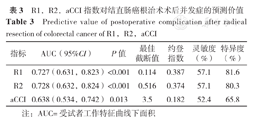 R1,R2,aCCI指数对结直肠癌根治术术后并发症的预测价值