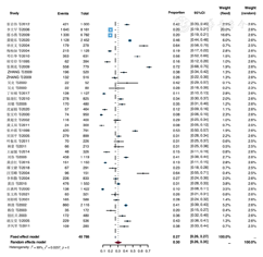 | 2010年及以前 | 24[5,6,7,8,9,10,11,14,15,17,18,19,20,21,22,24,25,27,28,29,31,34,37,38] | 33.56(27.74,39.63) | 99.1 | <0.001 | REM | |||