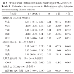 中国儿童幽门螺杆菌感染率影响因素的单因素Meta回归分析