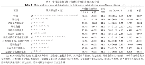 Meta-analysis of associated risk factors for Helicobacter pylori infection among Chinese children