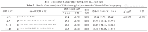 Results of meta-analysis of Helicobacter pylori prevalence in Chinese children by age group