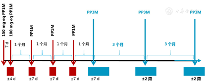 PP3M转为每6个月注射1次棕榈酸帕利哌酮(PP6M):2022年一项随访12个月,对比PP6M和PP3M治疗精神分裂症复发风险的非劣效性研究结果显示,PP6M组与PP3M组双盲期复发事件相当,符合非劣效性标准[50]。