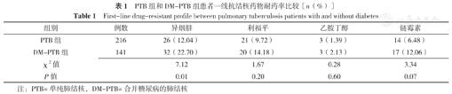 First-line drug-resistant profile between pulmonary tuberculosis patients with and without diabetes