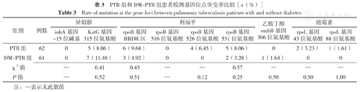 Rate of mutation at the gene loci between pulmonary tuberculosis patients with and without diabetes