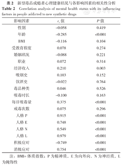 Correlation analysis of mental health status with its influencing factors in people addicted to new synthetic drugs