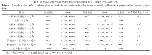 Analysis of direct effect,indirect effect and total effect of possibleinfluencing factors on mental health status in people addicted to new synthetic drugs