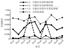 | 可能存在轻微抑郁 | 可能存在抑郁风险 | 可能存在中至重度抑郁 | 无明显抑郁 | ||