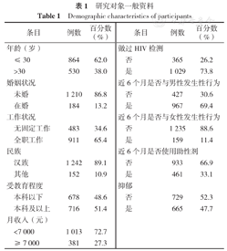本研究采用便利抽样的方法,于2020-12-16至2021-03-02选取1 394例未感染HIV或感染状态未知的MSM者进行线上问卷调查,纳入标准:(1)生理性别为男性;(2)最近1年与男性发生口交/肛交;(3)未做过HIV检测或检测结果为阴性;(4)能独立完成问卷;(5)自愿参加本研究。排除标准:(1)年龄<18岁;(2)不能配合调查者。本研究已于2020-05-20经过淡蓝公益伦理委员会审批(DLIRB202005-01),研究对象自愿参加本研究并知情同意。