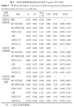 Multinomial logistic regression of influencing factors of depression in Chinesemen who have sex with men