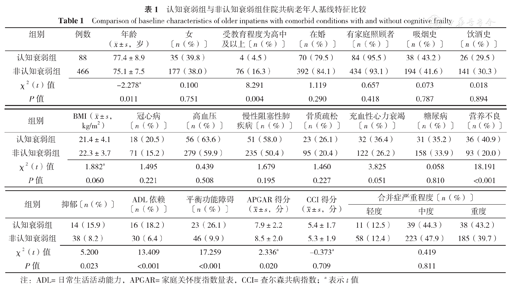 认知衰弱组与非认知衰弱组住院共病老年人基线特征比较