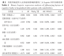 Binary Logistic regression analysis of influencing factors of cognitive frailty in hospitalized older patients with comorbidities