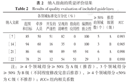 指南由4名经过循证方法学学习的研究者根据临床指南研究与评价系统Ⅱ(Appraisal of Guidelines for Research and Evaluation,AGREE Ⅱ)[16]独立进行评价,采用组内相关系数(ICC)对评价结果进行一致性检验。