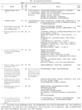 注:—表示不清楚;IWGDF=国际糖尿病足工作组,GIN=国际指南协作网,RNAO=加拿大安大略省注册护士协会,NICE=英国国家卫生与临床优化研究所,SVS=血管外科学会,IDSA=美国感染病学会,WHS=伤口愈合协会,JDA=日本皮肤病学会,AHRQ=卫生保健研究和质量机构,GRADE=推荐分级的评估、制定与评价,SIGN=苏格兰校际指南网
