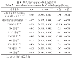 | 指南名称 | ICC | 95%CI | F值 | P值 |