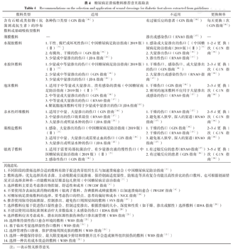 本研究通过全面检索近十年来糖尿病足指南,提取其中与敷料选取和应用相关的内容,汇总成糖尿病足溃疡敷料推荐意见综合表,为临床干预提供参考意见,有以下几点值得讨论。