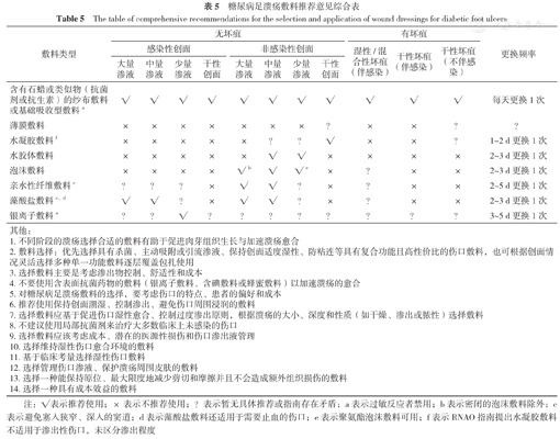 The table of comprehensive recommendations for the selection and application of wound dressings for diabetic foot ulcers