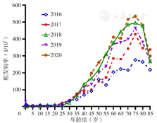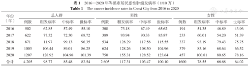 2016—2020年岑溪市恶性肿瘤发病资料来源于岑溪市疾病预防控制中心肿瘤登记数据,人口资料来源于岑溪市公安局。数据导出系统时存在重复数据,由人工审查、记录并进行删除。