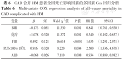 Multivariate COX regression analysis of all-cause mortality in CAD complicated with HM