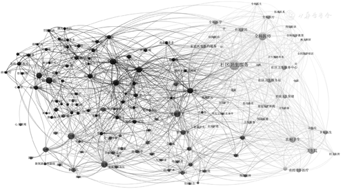 但是本研究也发现,部分全科医学与社区卫生工作重点未在期刊文献中充分体现。如全科医学教育作为全科医学学科发展的基础和全科人才培养的重要途径,虽然我国自2011年颁布了多项相关政策,但其在期刊文献中并未成为突现词,也未形成明显聚类。提示与全科医学教育相关的研究数量和影响力尚有不足,研究者需要在今后的实践中进行探索和总结,以促进我国全科人才培养水平的提升。另外,《"健康中国2030"规划纲要》对未来社区卫生的职责及功能定位、社会对健康管理和照护的需求有了新的要求,因此在医学模式创新中需进一步重视从"被动医疗"到"主动健康"的转化[8]。