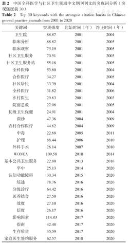 2001—2020年中国全科医学与社区卫生领域中文期刊刊文的关键词词频分析