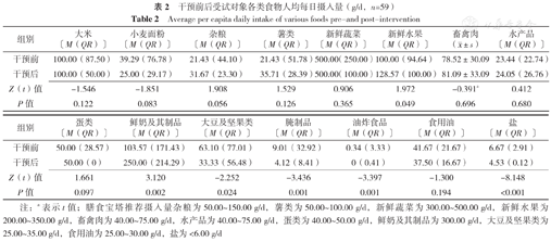 干预前后受试对象各类食物人均每日摄入量(g/d,n=59)