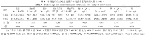 干预前后受试对象能量及各类营养素每日摄入量(n=59)