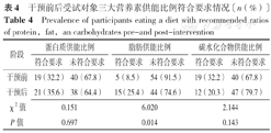 Prevalence of participants eating a diet with recommended ratios of protein,fat,an carbohydrates pre-and post-intervention