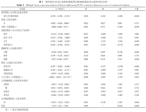 签约居民PCAT连续性维度得分影响因素的多元线性回归分析
