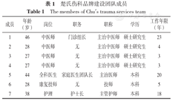 新时期社区特色专科品牌建设团队成员共7人,均来自外滩街道社区卫生服务中心。年龄为27~46岁,平均年龄(34.0±7.8)岁;工作年限为3~23年,平均工作年限(10.9±8.3)年。楚氏伤科品牌建设团队成员基本信息见表1。