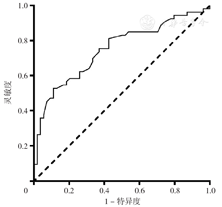 ROC曲线结果显示,BMI预测EH患者发生SAR的曲线下面积为0.749〔95%CI(0.656,0.843)〕,最佳截断值为22.0 kg/m2,灵敏度为52.8%,特异度为88.9%,见图1。