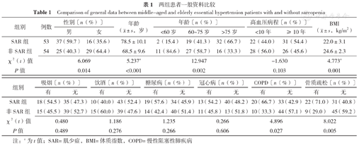 Comparison of general data between middle-aged and elderly essential hypertension patients with and without sarcopenia