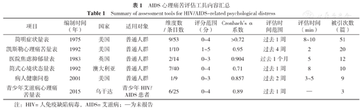 上述6种心理痛苦评估工具各具优点,并已被运用在国内外HIV/AIDS患者的评估中,研究者在选择上述量表时,应该根据受试者的基本情况和研究目的进行综合考虑,以选择合适的评估工具。
