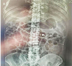 实验室检查:(1)血常规:白细胞计数4.26×109 /L〔参考范围:(3.50~9.50)×109/L〕,中性粒细胞计数2.80×109/L〔参考范围:(1.80~6.30)×109/L〕,红细胞计数2.61×1012/L〔参考范围:(3.80~5.10)×1012/L〕,血红蛋白74 g/L(参考范围:115.0~150.0 g/L),血小板计数229×109/L〔参考范围:(125.0~350.0)×109/L〕;(2)感染性指标:白介素6(IL-6)19.20 ng/L(参考范围:0~7 ng/L),降钙素17.50 μg/L(参考范围:0~0.5 μg/L),C反应蛋白6.11 mg/L(参考范围:0~8.0 mg/L);(3)肝功能:总蛋白53.30 g/L(参考范围:60.0~82.0 g/L),白蛋白32.10 g/L(参考范围:35.0~53.0 g/L)。