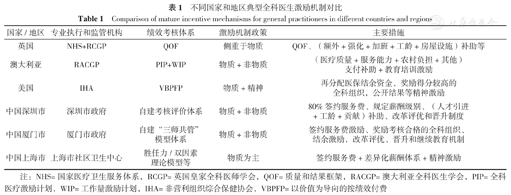 Comparison of mature incentive mechanisms for general practitioners in different countries and regions
