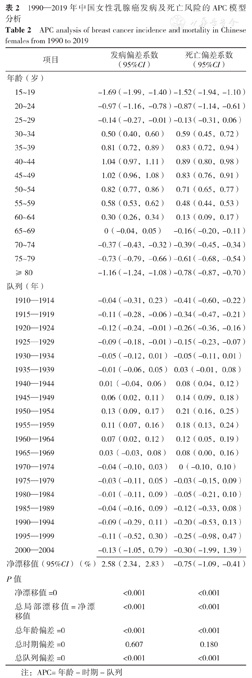 1990—2019年中国女性乳腺癌发病及死亡风险的APC模型分析