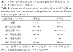 6种常用房颤筛查工具/方法的灵敏度和特异度对比(%)(以12导联心电图为"金标准")