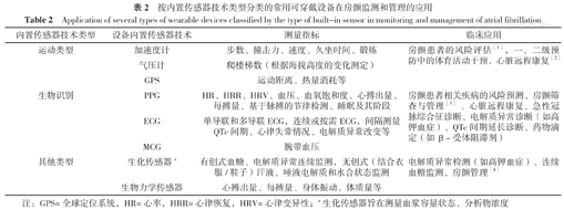 按内置传感器技术类型分类的常用可穿戴设备在房颤监测和管理的应用