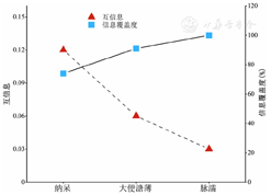 模型诠释:分别得到21个隐变量的信息曲线及类概率分布。结合专业知识,对诠释结果进行分析,以隐变量Y17为例:结合隐结构模型图与Y17的信息曲线(图3)可知,隐变量Y17与纳呆、大便溏薄、脉濡相连,3个显变量对隐变量Y17的累计信息覆盖度达95%,说明他们之间关系密切,纳呆、大便溏薄、脉濡可视作隐变量Y17划分目标人群的主要依据。