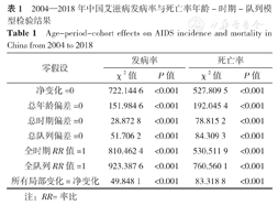 2004—2018年中国艾滋病发病率与死亡率年龄-时期-队列模型检验结果