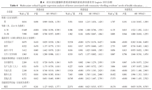 社区居民健康科普需求影响因素的多因素有序Logistic回归分析
