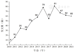 2010—2021年,我国定向医学生相关文献的平均年发文量为50篇,总体呈上升趋势,2016年达到第一个发文高峰,2016—2017年出现小幅下降,2018年发文量达到历年顶峰(81篇),随后发文量有所下降(图2)。