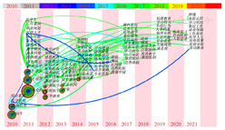注:时间演变以颜色变化表示,由灰色向红色过渡,代表2010—2021年