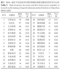 High-frequency keywords and their betweenness centrality in research on the training of targeted admission medical students in China from 2010 to 2021