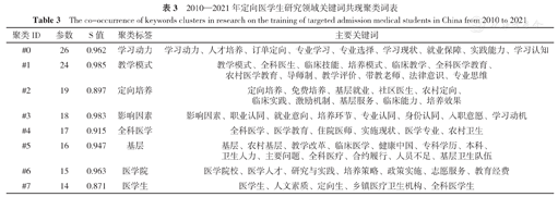 The co-occurrence of keywords clusters in research on the training of targeted admission medical students in China from 2010 to 2021