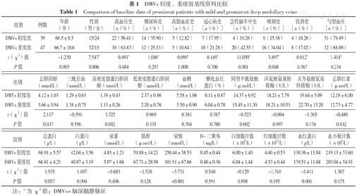 Comparison of baseline data of prominent patients with mild and prominent deep medullary veins