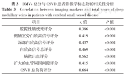 DMVs总分与CSVD患者影像学标志物的相关性分析