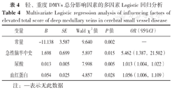 Multivariate Logistic regression analysis of influencing factors of elevated total score of deep medullary veins in cerebral small vessel disease
