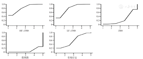 采用网状Meta分析方法比较rTMS的4种模式对脑卒中后上肢运动功能障碍患者的临床疗效。